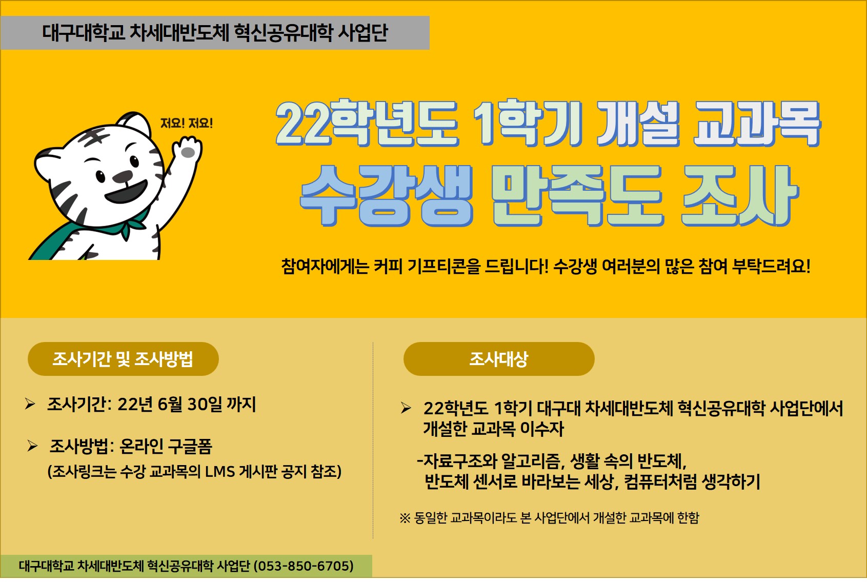 2022학년도 1학기 개설교과목 수강생 만족도 조사 (~6/30)