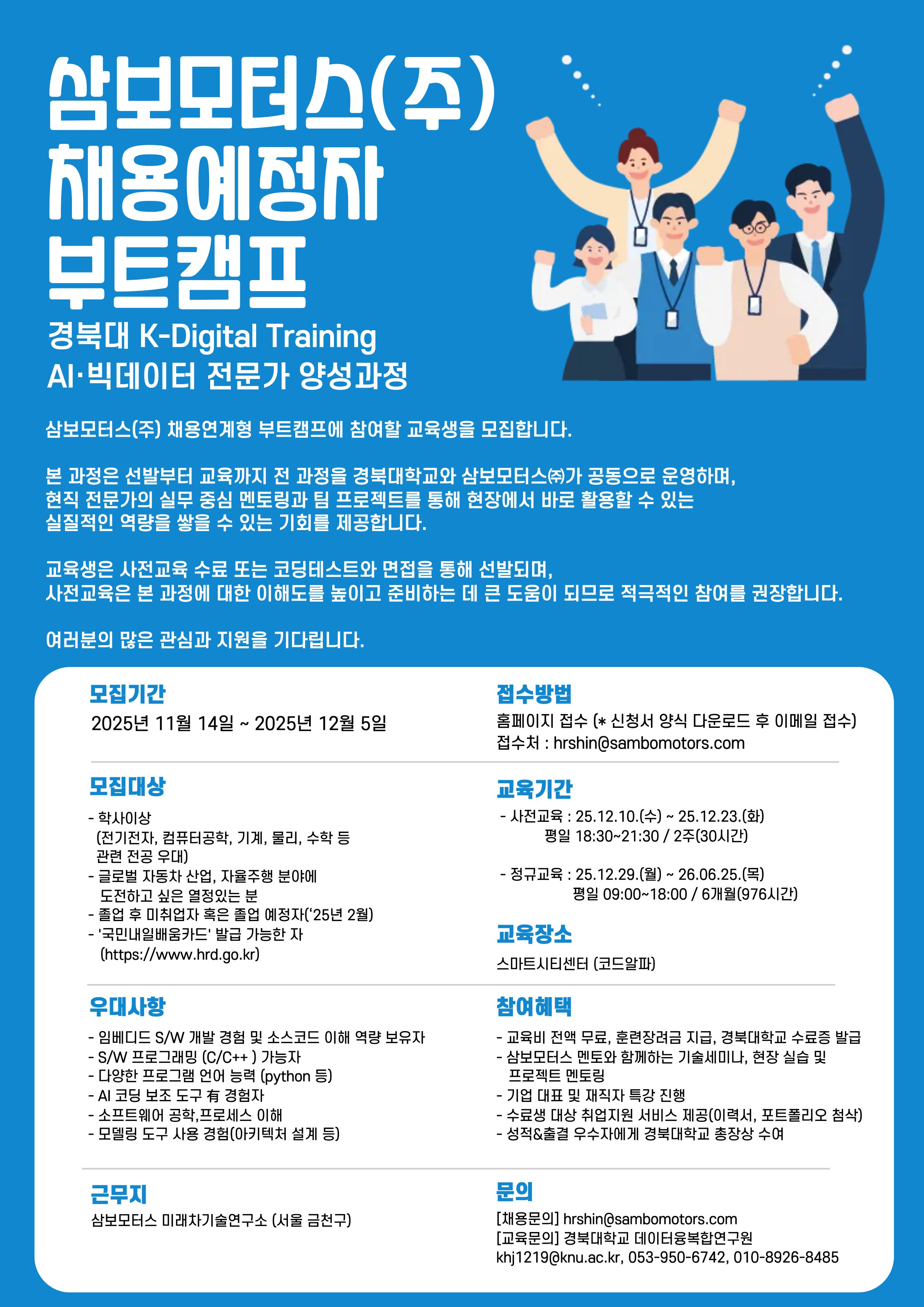 〔경북대〕 (대구소재 삼보모터스 입사 맞춤형) KDT AI·빅데이터 부트캠프 교육생 모집