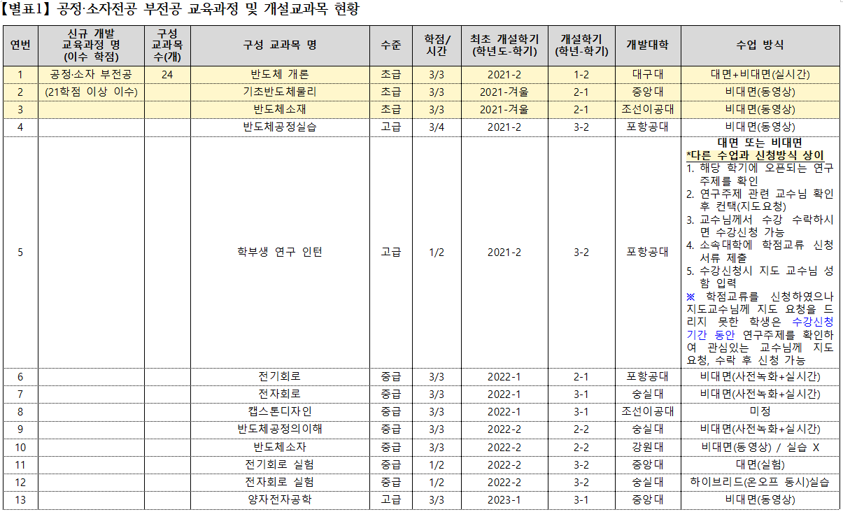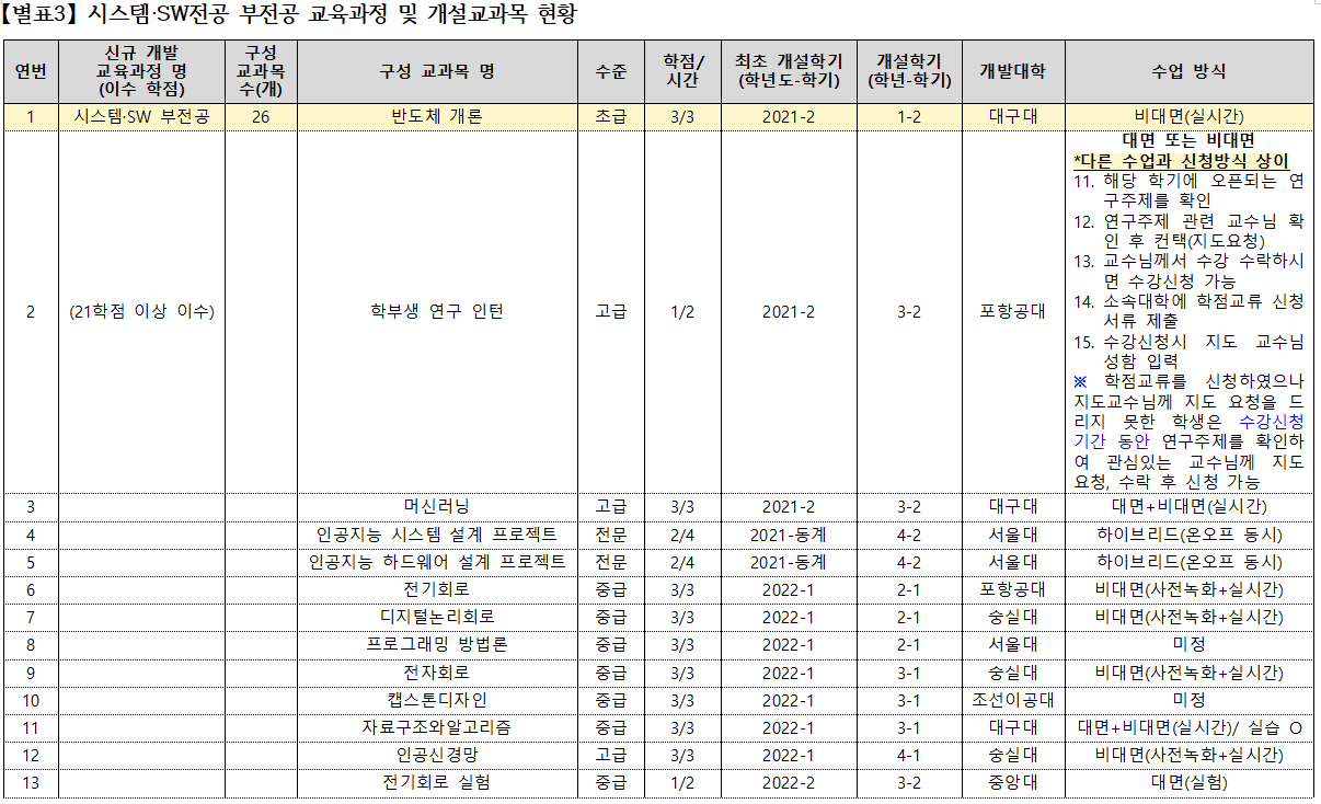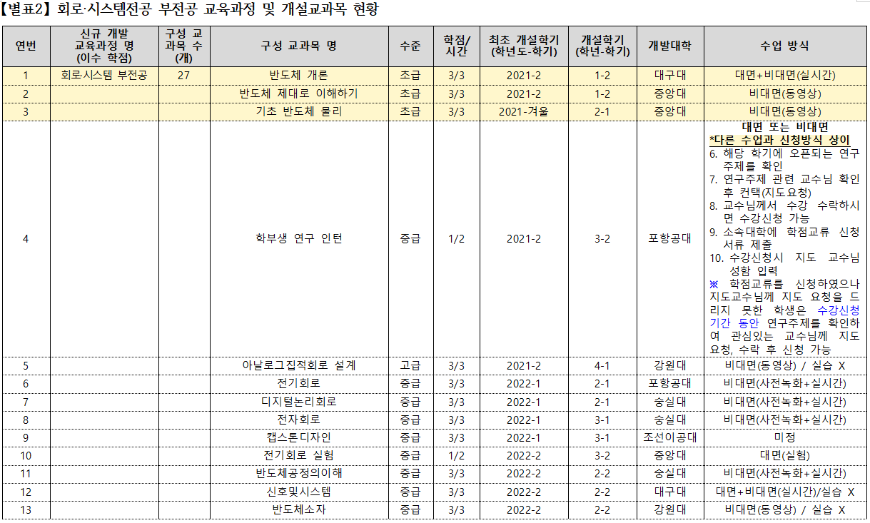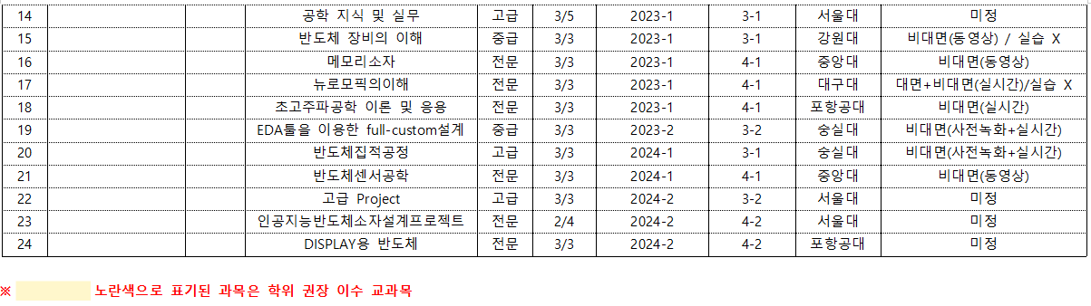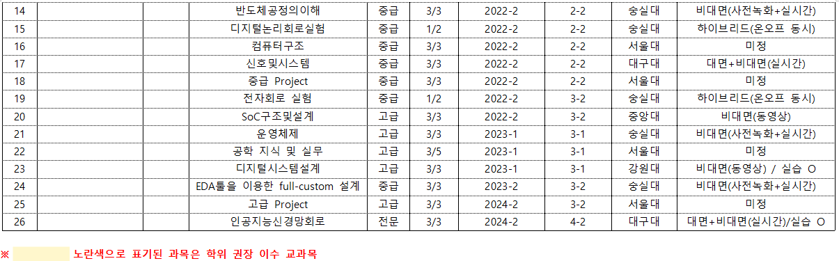 *개설학기 및 수업 방식은 매 학기마다 변경될 수 있으니 주기적으로 확인해주시기 바랍니다.