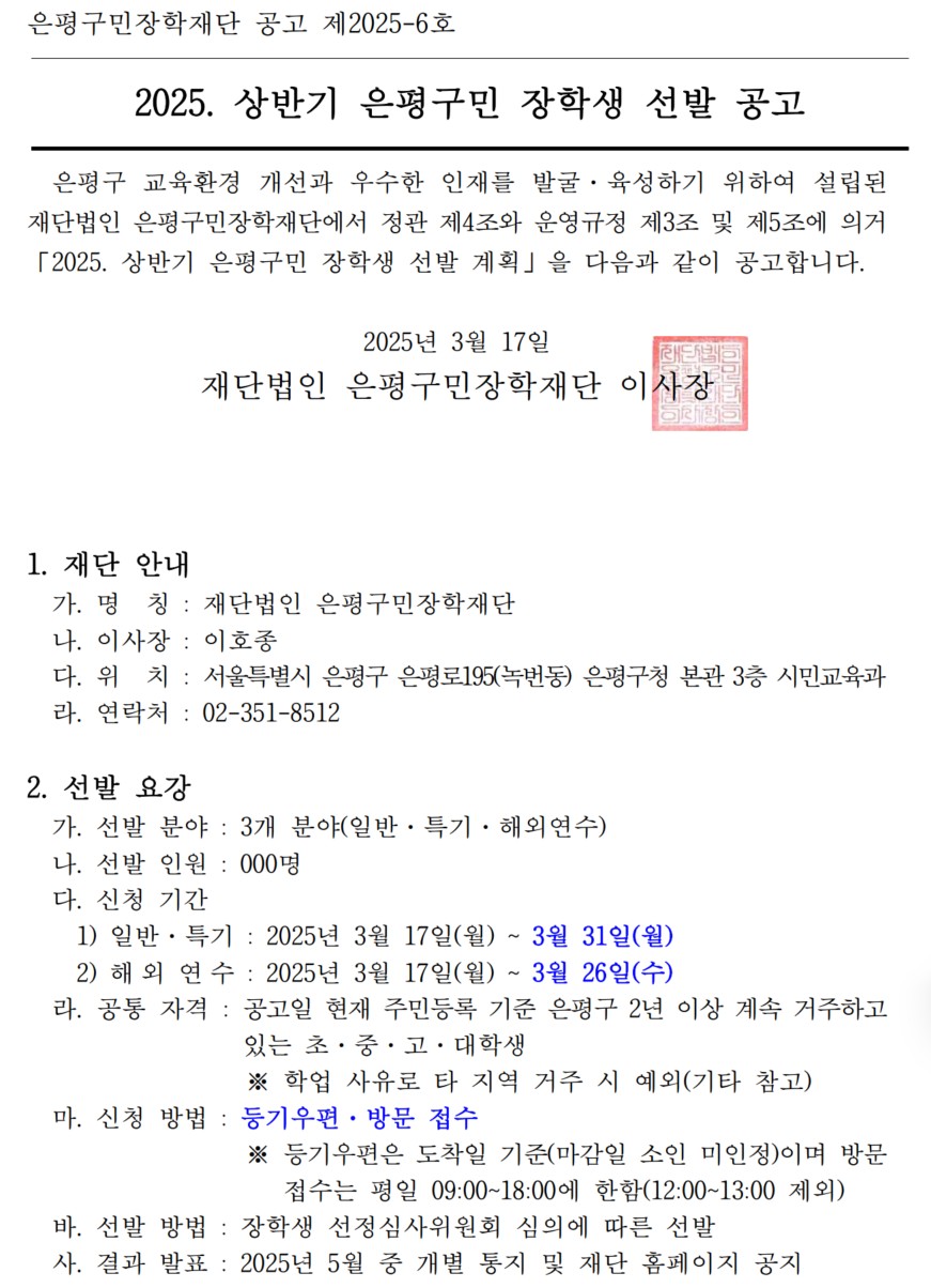 20250318122654_¡¼ºÙÀÓ¡½_2025._»ó¹Ý±â_ÀºÆò±¸¹Î_ÀåÇлý_¼±¹ß_°ø°í_Page1.jpg